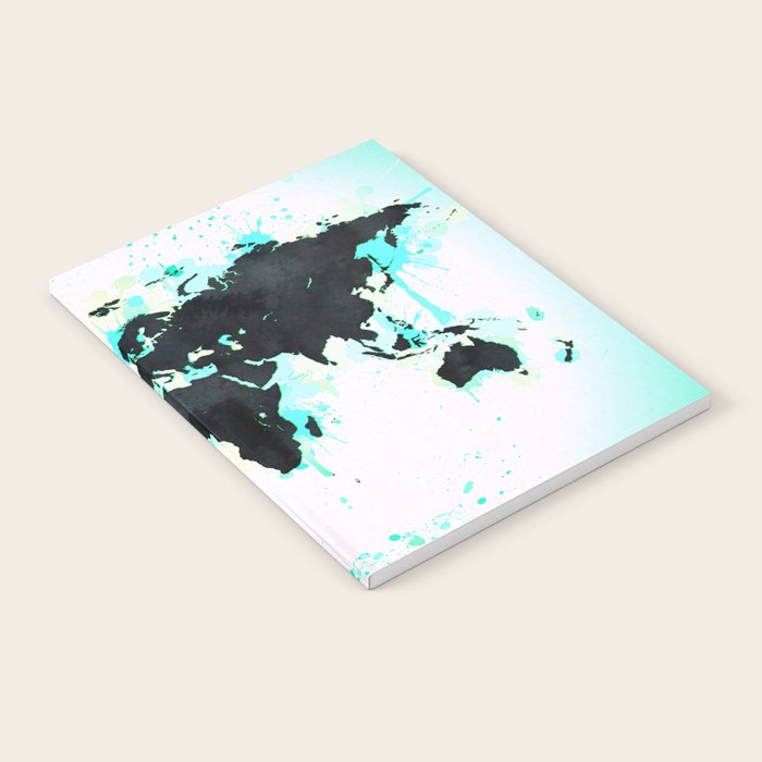 World Map Turquoise Paint And Black Ink Notebook By Naturemagick
