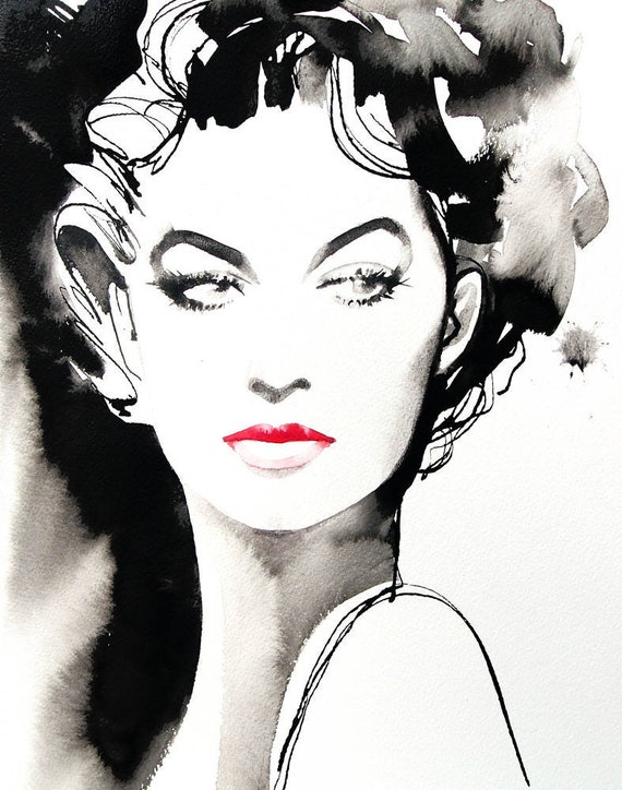 A4 Contemporary Art Original Black Ink Painting Modern By Regiaart
