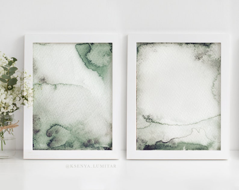Set Of 2 Green Abstract Wall Art Modern Printable Art Etsy